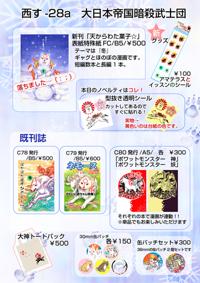 ノベルティで配る予定だった大神のミニシール+チラシを先着で配布します。