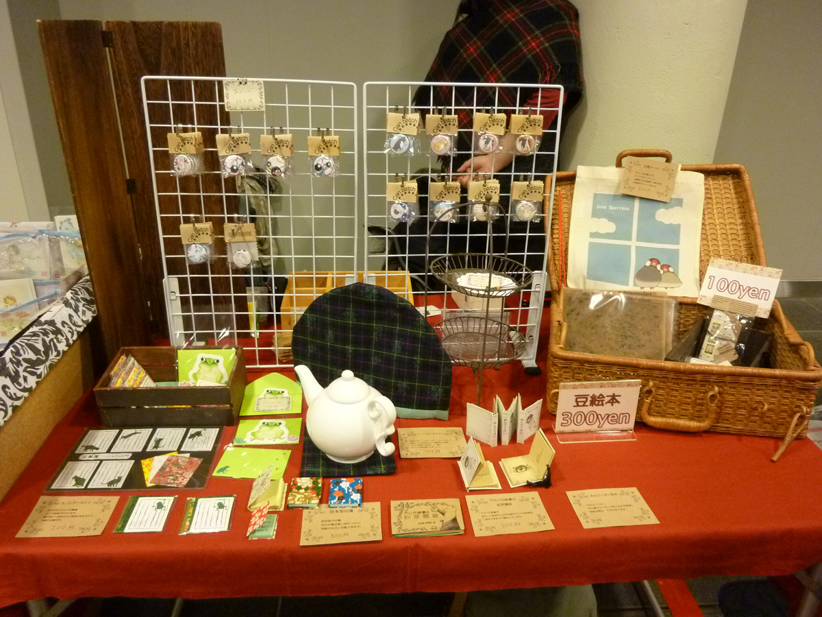 今回のブースは紙物(メモやミニ便箋)や、バッチ、ポストカードが主でしたが、